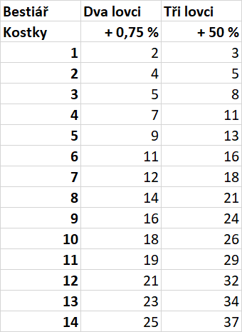 Na lov se může vydat kdokoliv a v maximálním počtu 3 hráčů na stejné monstrum/skupinu monster, nicméně jedna postava smí lovit jen jednou za 3 herní dny (reálný měsíc a půl). Kostky pro více hráčů se navyšují, viz tabulka ZDE.